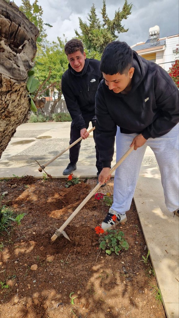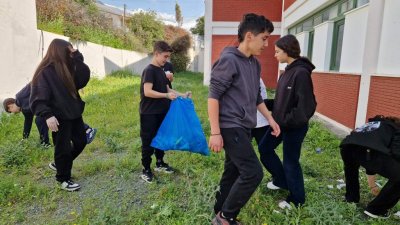 Μαθητές και μαθήτριες του σχολείου μας υπό την επίβλεψη της καθηγήτριας κα. Γεωργία Γεωργίου καθάρισε μέρος της αυλής.
