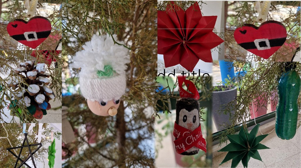 Φέτος, με αφορμή τα Χριστούγεννα, στολίσαμε το οικολογικό μας δεντράκι με στολίδια, που ήταν κατασκευές των μαθητών της οικολογικής ομάδας του Σχολείου μας από επαναχρησιμοποιούμενα υλικά.