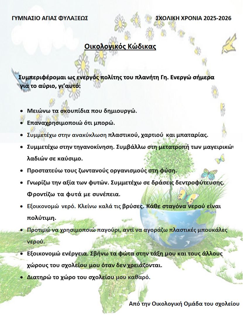 03.2026 - Οικολογικός Κώδικας της Οικολογικής Ομάδας