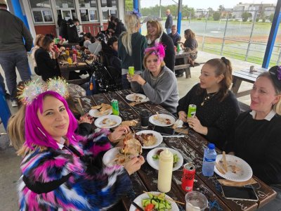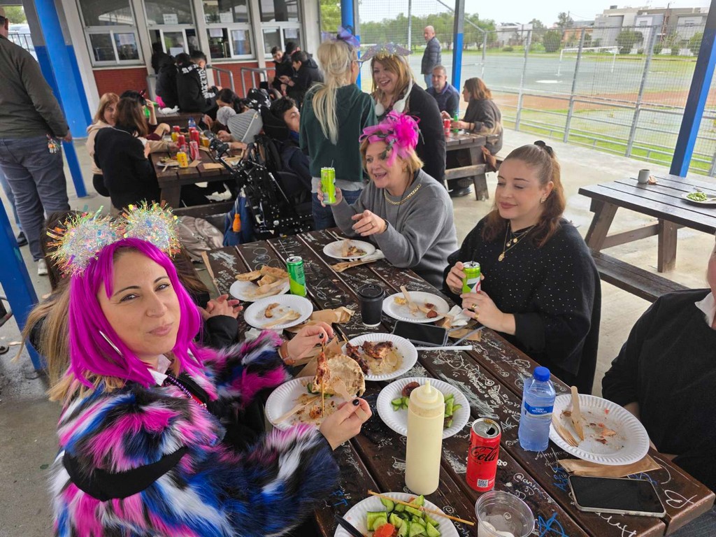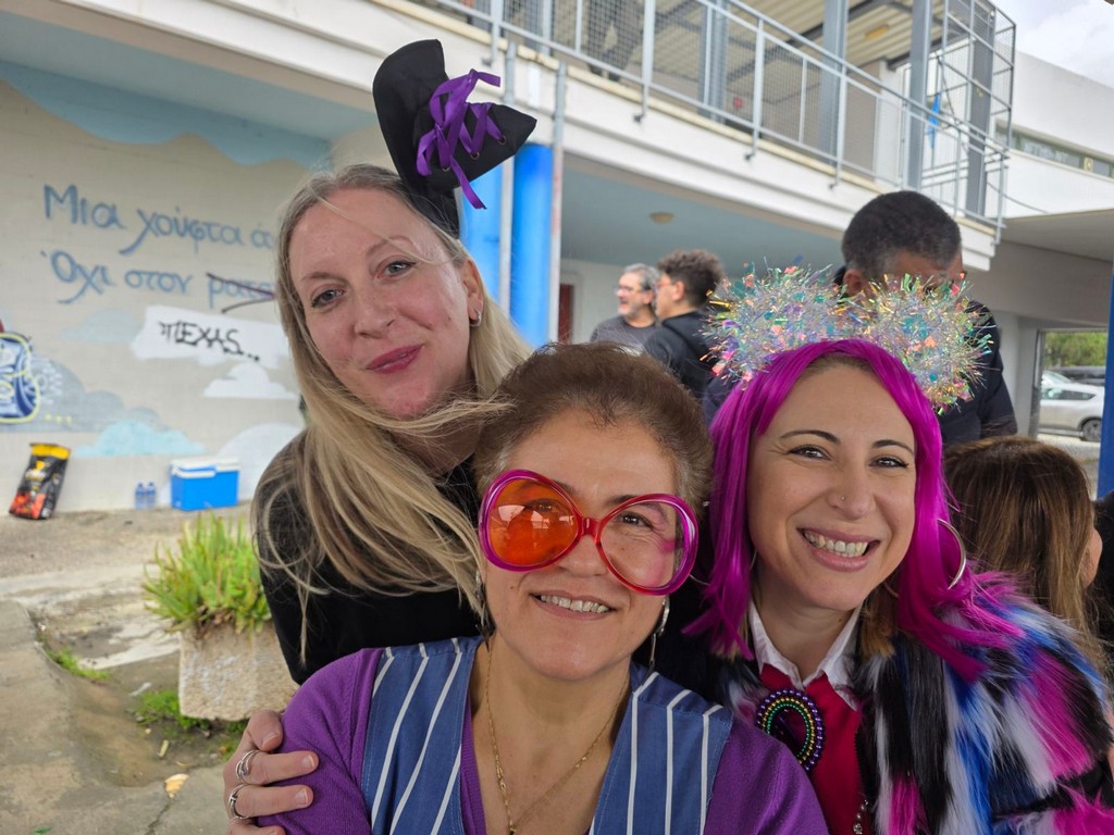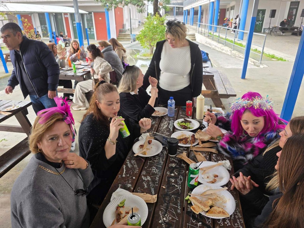 Η αυλή γέμισε χαμόγελα, μουσικές και γιορτινή διάθεση, ενώ μαθητές και εκπαιδευτικοί συμμετείχαν με ενθουσιασμό, απολαμβάνοντας τη ζεστή ατμόσφαιρα της ημέρας.