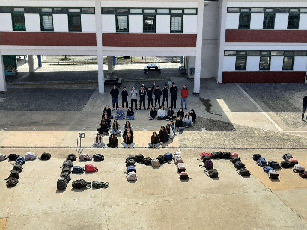 Οι μαθητές σχημάτισαν με τις σχολικές τους τσάντες
